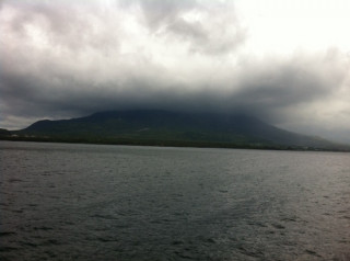 5時間半ほどの船旅を終え、 ようやく鹿児島の港に到着しました。 船内では、竹島が属する三島村の 村長さんが話しかけてくださり、 島のなりたちをじっくり聞かせて くださいました。 あの島は、大きな海底カルデラの一部 だったんですね。 だから断崖絶壁なんだなぁ。