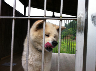 ところで土楽には どうぶつが3びきいます。 秋田犬の「ヤン」と、 ねこの「はなこ」と「こはな」。