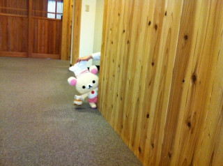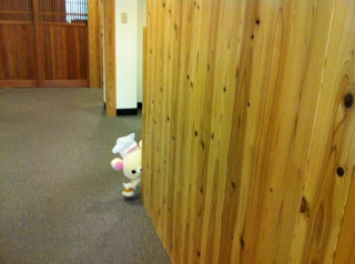 そんなことを言ったか言わずか、 その短い足で立ち上がって、 事務所の廊下をすたすた歩き どこかへ、行ってしまいました‥‥