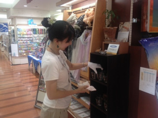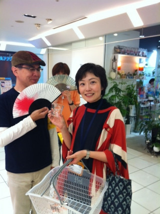 この方、いろんなものをご愛用いただいているそうです、ありがとうございます!コップをひとつひとつ手で持ってみて、決めていかれました。扇子も一緒に。快適な夏をすごしてくださいねーーー。