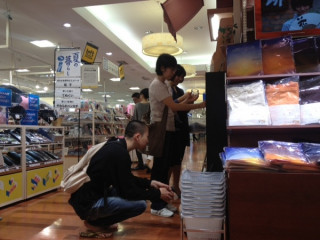 お昼休みのタイミングでたくさんのかたに来ていただきました。ネットでは売り切れていたので、とひびのさんの扇子を即決でご購入いただきました。(丸の内ロフトには全種類あります!)他にもくびまきやはじまりのコップが大人気です。なんと、麻のくびまき「トリコロール」は残りひとつになりましたよー!