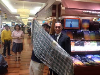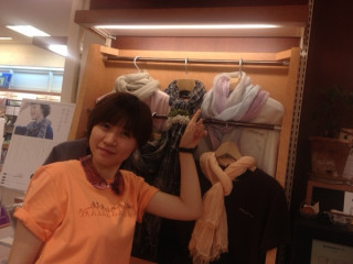 あれ?ふと気づいたら着るものチームがいません。どこにいったのでしょうか?男性のお客さま。ネイビーのチェックとお悩みの末、グリーンのチェックにされました。ありがとうございますー。男性にも使いやすい色あいですー。父の日にも、いいかも。