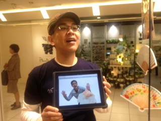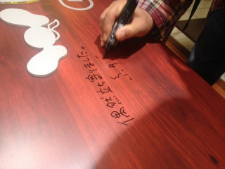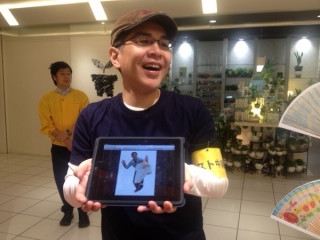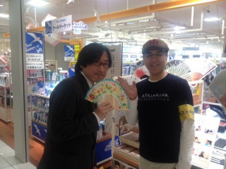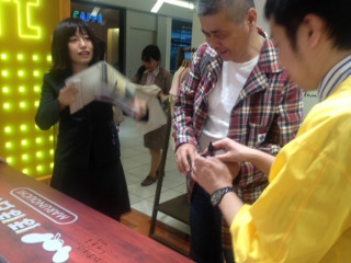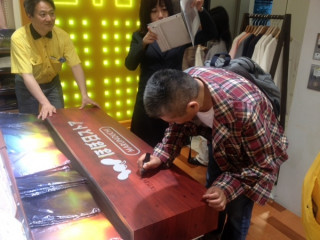 弊社社長が、出張帰りに偶然立ち寄りました。嵐のようにやってきて、嵐のようにサインをし、嵐のように、店内をぐるぐる見ています。サインはわかりづらいかもしれませんが、探してみてくださいね。