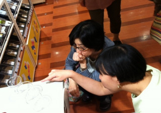 はじまりのコップ、のこりわずかになりました。「どのこをつれてかえろう…」お迷いのお客様とじっくりお話をする外山。と、書いているうちに、どうやらお決まりのようです。ペアでご購入くださいました。コップは残り6個。たくさんご用意したのに、驚きです。