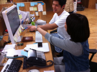甘党じゃないから、 いつもはちっとも試食してくれない、 左端にうつっている ぐっさんも試食して、 「おいしい!」といってくれましたよ。