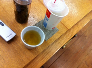 昨日、が簡さんのお茶とコーラをビックリマンチョコと一緒に飲んでいた、とご報告したばかりですが、たまたまテレビ前で、また、発見しました。誰かが飲んでいた、簡さんのお茶とコーラのセット。(写真1枚目の左上に見えるのは、 簡さんのお茶のタンブラーなのです)流行っているんでしょうか。と、いうか、素晴らしくおいしかったりするんでしょうか。2人いると、実はめちゃくちゃおいしい組み合わせなのかも‥‥、という気がしてきました。