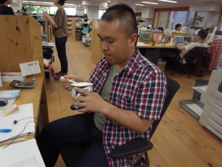 席替えも済み、静か仕事をしていると、ふいに「わ!!!」となんだかちょっと興奮してしまうことが起こりました。レアキャラを目撃したのです。レアキャラというのは、奥の部屋に潜む、「妖怪・ミタゾ」です。ミタゾを観たぞ!部屋に行けば会えるのですが、ときどき、トイレに出てきたり、何か用で出てきたり、ごく稀に、こっちのフロアでも、会うことができます。あ、そうこう言っているうちに、ミタゾが、帰っていきます。ミタゾを、観たぞ。がんばってね、ミタゾ。しずかにエールを送ります。