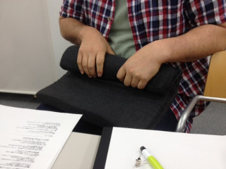 とあるミーティング中です。このミーティングは、手遊びのひとが多いです!座布団を巻き巻きして、なんかそばを打ってるみたいなひととか、ひとの手帳についてるどせいさんを、無言でにぎにぎしているひととか。てもちぶさたなんでしょうか。そういうひとのことを弊社では「てもちぶたさん」と呼びます。