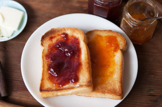かき氷だけでなく、もちろん トーストにも、ぜひ。 食パンにバターを塗って トースターでこんがり焼いたあとに たっぷりと「おらがジャム」を乗せます。 バターの塩っけとジャムのあまさが 合わさって、たまりません。