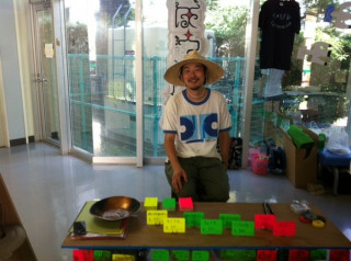 という聞いたことのないことばを 「これはどういう意味?」 と聞いたが最後(!) 道有くんがヒントをいろいろ出しながら、 ついにはそのことばを買わせてしまう、という たいへんおそろしい商売です。(ブルブル) まっ、プライスカードの通り、 価格は大変良心的なんですけどね。 ことばあそびの気分で気軽に参加できますよ。