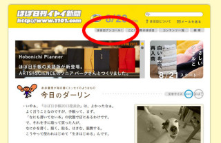 どこにあるかというと、 「ほぼ日」のホームにございます。 日付の下です。 こちらを、ぽちっとクリックすると びよ〜〜ん! とシャッターがおります。