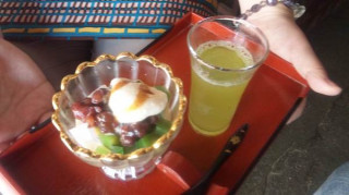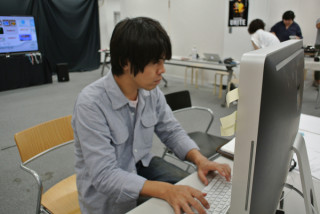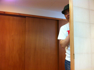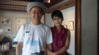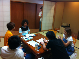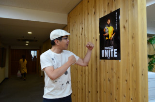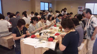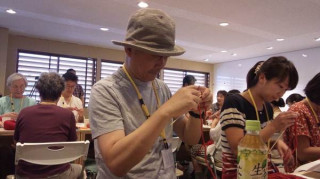 ただいま最終準備中…… 展示の調整をしている お茶屋の道有さんのところに、 コヤマ菓子店の裕隆さんも、 応援に来てくれました。