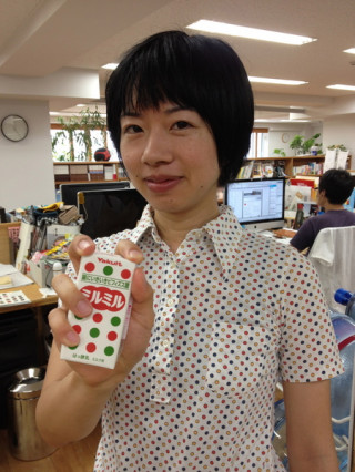 いつもお昼頃にくるヤクルトさん。今日は豆乳のんで、体にいいことしようかしら〜とヤクルトを買う列に並んだところ、買い終わったが。あ、ミルミルもいいよねー。って、ん?!お洋服と見事にマッチしております!!さすが、服チームだけあって、コーディネートがうまいなぁー。