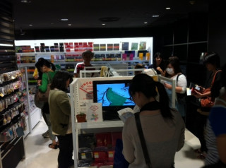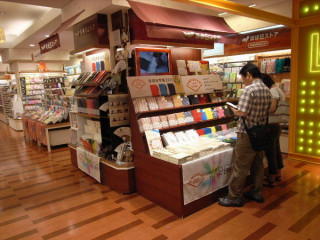 そして、扇子や、ハラマキ、 タオルが一緒に並ぶ 丸の内ロフトは、 おなじみお店の入り口に どーんと手帳が並んでいます。