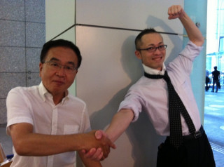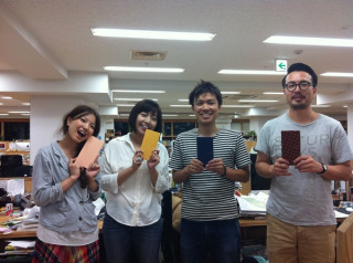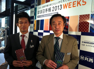 (写真4) 左の方(丸善文具ご担当・渡辺さん): 「店長、知ってますか? 『ほぼ日』の「ただいま製作中!」 あのページに、ぼくら出るんですよ。」