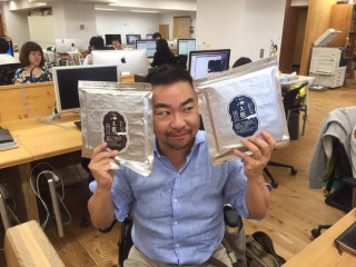 ほぼ日の食いしん坊No.1にして 「海大臣」担当の は、 両手に「東」と「西」を持って、