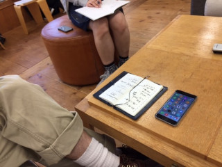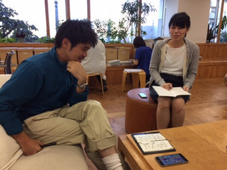 こちらの写真は、 とある打ち合わせの一場面。 おっくんが目の前に広げている ほぼ日手帳に、 なんともいえない 違和感がありまして‥‥。