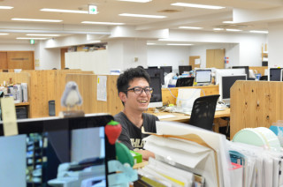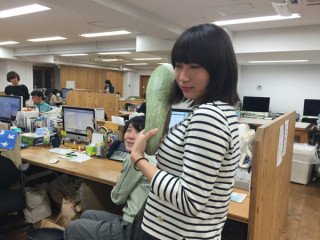 ハリーからの原稿催促に茫然としていると となりにものすごい笑みの青年が 立っていました。 アルバイトの くんでした。