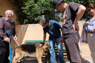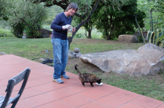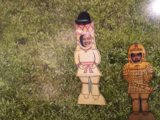 そして、彼は1Fの 「古墳の部」に降りてきて、 顔出し看板で、 ハニワになって写真をパチリ。 なんと、顔出し看板の上に スソさんの帽子を置く、 という工夫王ならではの アイデアで撮影です。