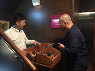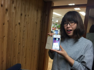 は、お着物への照明を調節しながら こんなにもうれしそうな顔に なっていました。