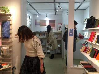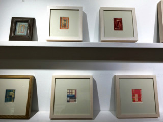 「TOBICHI」常設ショップの 奥のスペースでは、 アトリエシムラのグッズや 志村ふくみさん、洋子さんの書籍を 販売します。 今回も、ふくみさんの 着物の余った布をつかった コラージュ作品「小裂」が ありますよー! また、「小裂」の 半分くらいのおおきさの コラージュ作品「のばら」も たくさんご用意してくださいました。