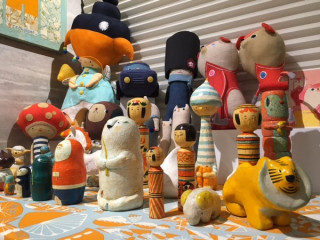 1枚目の写真に写っているのは 福田さんの立体作品です。 (ぬいぐるみは、 ぬいぐるみデザイナーの 原優子さんの作品です) 福田さんによると、この子たちは なかなか日の目を浴びる機会が ないのだそうです。 「大福田展」には、こんなふうに ふだん見られないものも 展示させていただいています。