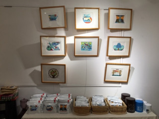 TOBICHI常設ショップの奥は 福田さんのグッズコーナーに。 オリジナルグッズのほか、 2015年版のほぼ日手帳で コラボさせていただいた「十布」のグッズや 発売されたばかりの「ABCカルタ」など 盛りだくさん。 新パッケージになったアンカーコーヒーも 原画とともに並んでいますよー。