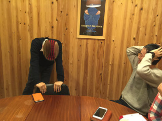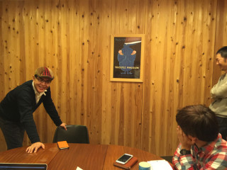 で、この写真はなにかというと、 もちろん、「気まぐれラジお」と同様、 原稿争奪戦の様子です。 ごらんのとおり、 山下が勝ち取りました!