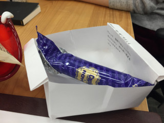 pondさんの指導で、 はこの折り方をマスターしました。 これで、おかしを食べるごとに いちいちゴミはこに行かずにすみます。