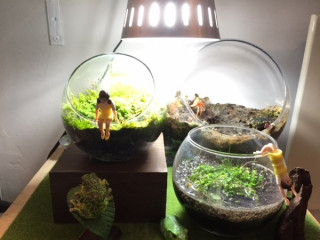 あと、余談ですが、 水草水槽のレイアウトの 世界大会では、 かなりの上位をとられています。 (写真2枚目は、その水槽用に育てている 工場のような水槽。 どれもきれいに育っています) そんな顔も持っていらっしゃいます。