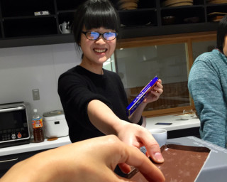 さんがチョコレートをくれました。 すっぱくてさわやかなコーヒーに、 雑穀っぽいクッキーのついたチョコがあう!