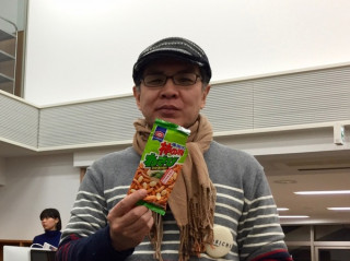 (そうなんです、昼間も、 私は山下に、あることを 丸投げされたのです。 山下は、ばつの悪さで 持っていた柿の種を ぜんぶ食べてしまいました。 それが1枚目の写真を撮ったとき)