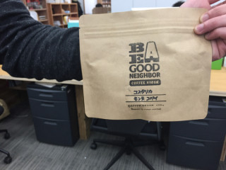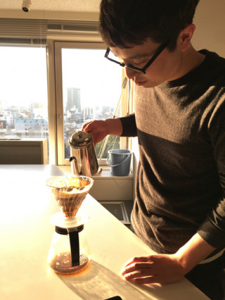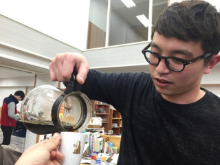 「コーヒーありますよ」 と言われて振り向いたら お会いしたことのなかった方がいて、 コーヒーを注いでくださいました。