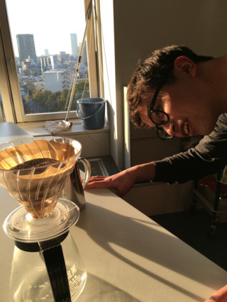 「ぼく、インターンの マツザキといいます。 いま、こちらでお世話になってます。 これは さんに言われて 淹れたコーヒーです」