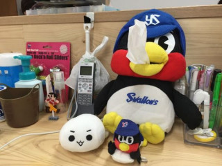 はたしか、ネコが好きなはずですが、 あれれ?? それは、すぐ目の前の球場のチームの ツバクロウじゃないですか! 口からティッシュ出てるし。 ネコ好きだけど、 ネコのものは0でした。 そういうこともあります。