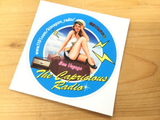 で、あたかもラジオのように、 みなさまからのメールを読み上げ、 あたかもラジオのように、 愉快なメールをくださった方には ステッカーを差し上げているのです。 写真の青いステッカー、 「美人ステッカー(二代目)」がそれです。 ちなみにオレンジ色のやつは初代です。