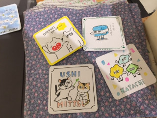 今回、初出店(?)の 「とくながあきこ の なんでも描く屋」。 コースターに なんでも描いてくれるお店です。 サンプルに描かれているのは 猫や星や空想の生き物や 「KATACHI」や……、 え? か、形? まぁ、とにかく、 なんでも描いてくれるそうです。