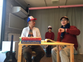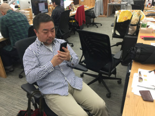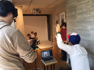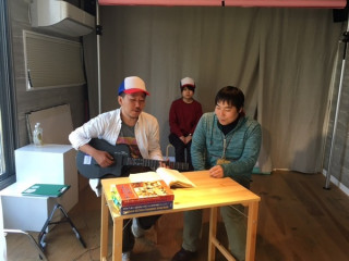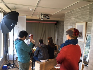 お一人めのお客さまは、 「自分」をオーダー。 ほぅほぅ、似顔絵ですね! そこへ、朝の散歩がてら 糸井が遊びに来ました。