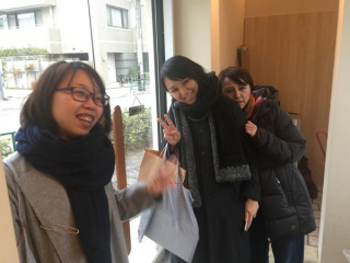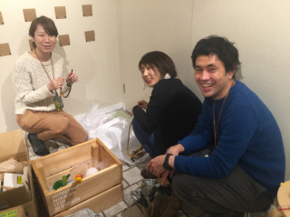 4枚目の写真 左から、初の宇宙部の紅一点、斉藤さん、 気仙沼のバスツアーに参加したこともある、 むっちゃん、 珍しい苗字なのに、会社の前にあるお店の 名前といきなりかぶった、 古謝(こじゃ)くんです。