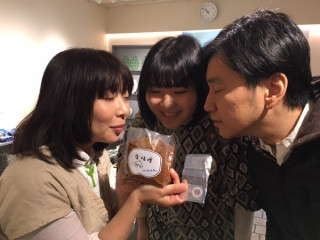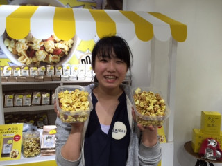 本日の常設ショップの スタッフは、赤堀ちゃん。 ポップコーンの好みは 「最初はアーモンドが好きかと 思っていたのですが、 わたし、だんだん、 キャラメルにハマってきて、 今はキャラメル派かも‥‥。 でも、うちのお父さんは アーモンド派でした。 『これは、おいしい』って言ってました」 とのこと。 (ちなみに赤堀ちゃんのお父さんは とんかつ屋さんで、 お酒が大好きなんだそうです)