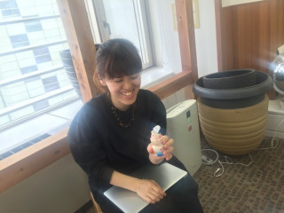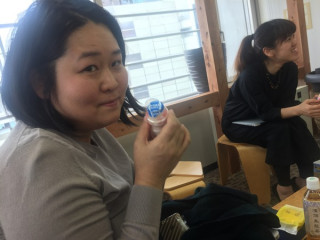 夕方のミーティングの最中、 みんなでヤクルトを飲みました。