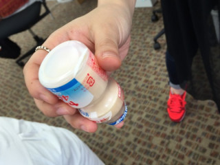 思わず、ヤクルトを手渡すと、 実演してくれました。