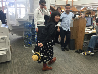 しかしながら、今回のそれは なかなかのインパクトだと思いました。 曰く、 「携帯とおさいふははいります。 しかし、満員電車だと、 羽がつぶれてしまわないか、 非常に心配になります。」 とのこと。 花柄のスカートに みつばちのバッグ。 すばらしい組み合わせですが、 ひとだかりを作る 組み合わせでもありました。 |