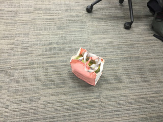 前の席の が 「みんなが買ってるから 私も乗っかっちゃいました」と言って スナック菓子の袋を見せつけてきました。
