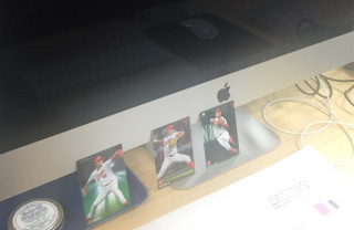 自分にとって不要なカードでも 弊社にはさまざまな球団のファンがいるので、 トレードしあいます。 こっそり机にも置いておきます。