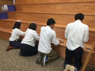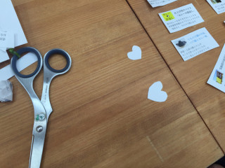 が 黙々とハートを紙で作っていました。 なんでやねん。 |