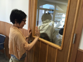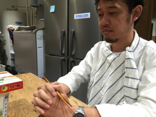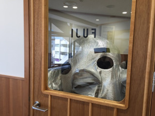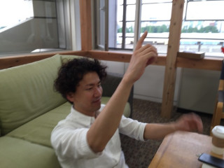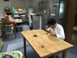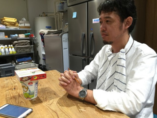 オフィスのキッチンに ぽつんと座る男がいる。
