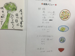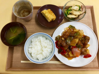もう日が暮れてしまいましたが、 今日の給食は「酢豚」でした。