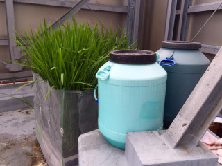 ほぼ日の入ってるビルの屋上で すくすくと育っている稲クンたちですが 真夏になりまして、 ものすごーく水を飲むようになってます。