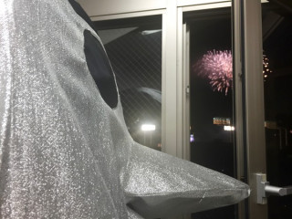 そして、社内の おみやげなどを置く台に のりしおチップスを やさしく載せておきました。